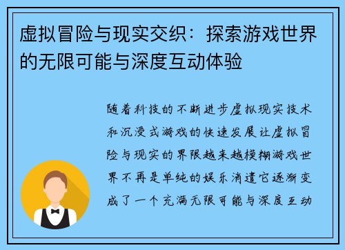 虚拟冒险与现实交织:探索游戏世界的无限可能与深度互动体验