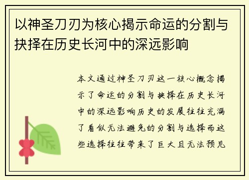 以神圣刀刃为核心揭示命运的分割与抉择在历史长河中的深远影响