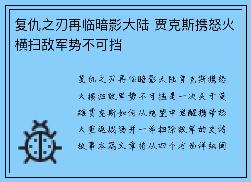 复仇之刃再临暗影大陆 贾克斯携怒火横扫敌军势不可挡